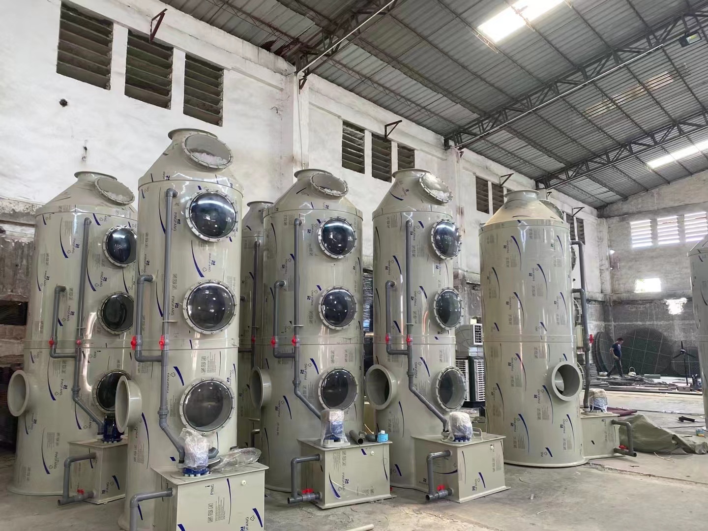 定期檢查:定期對(duì)PP噴淋塔進(jìn)行檢查,包括塔體、噴頭、填料層、循環(huán)泵和電控系統(tǒng)等部件。檢查部件是否出現(xiàn)損壞、堵塞或泄漏等問(wèn)題,并及時(shí)進(jìn)行處理。