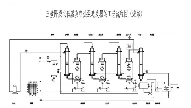 三效蒸發(fā)器是由相互串聯(lián)的三個蒸發(fā)器組成,低溫(90℃左右)加熱蒸氣被引入效,加熱其中的廢液,產(chǎn)生的蒸氣被引入第二效作為加熱蒸氣,使第二效的廢液以比效更低的溫度蒸發(fā),這個過程一直重復到一效。效凝水返回熱源處,其它各效凝水匯集后作為淡化水輸出,一份的蒸氣投入,可以蒸發(fā)出多倍的水出來。